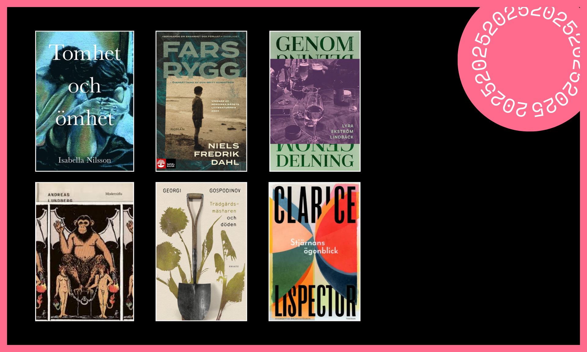 2025 var året då jag började skriva litteraturkritik mot betalning, ändå kommer jag knappt ihåg – förutom nyöversättningen av Clarice Lispectors fenomenala Stjärnans ögonblick, och Naturlagarna som jag precis börjat på – de femtio böcker jag läst. Augustnomineringarna ger inte heller någon vägledning vilka som var bra. Stor snark.