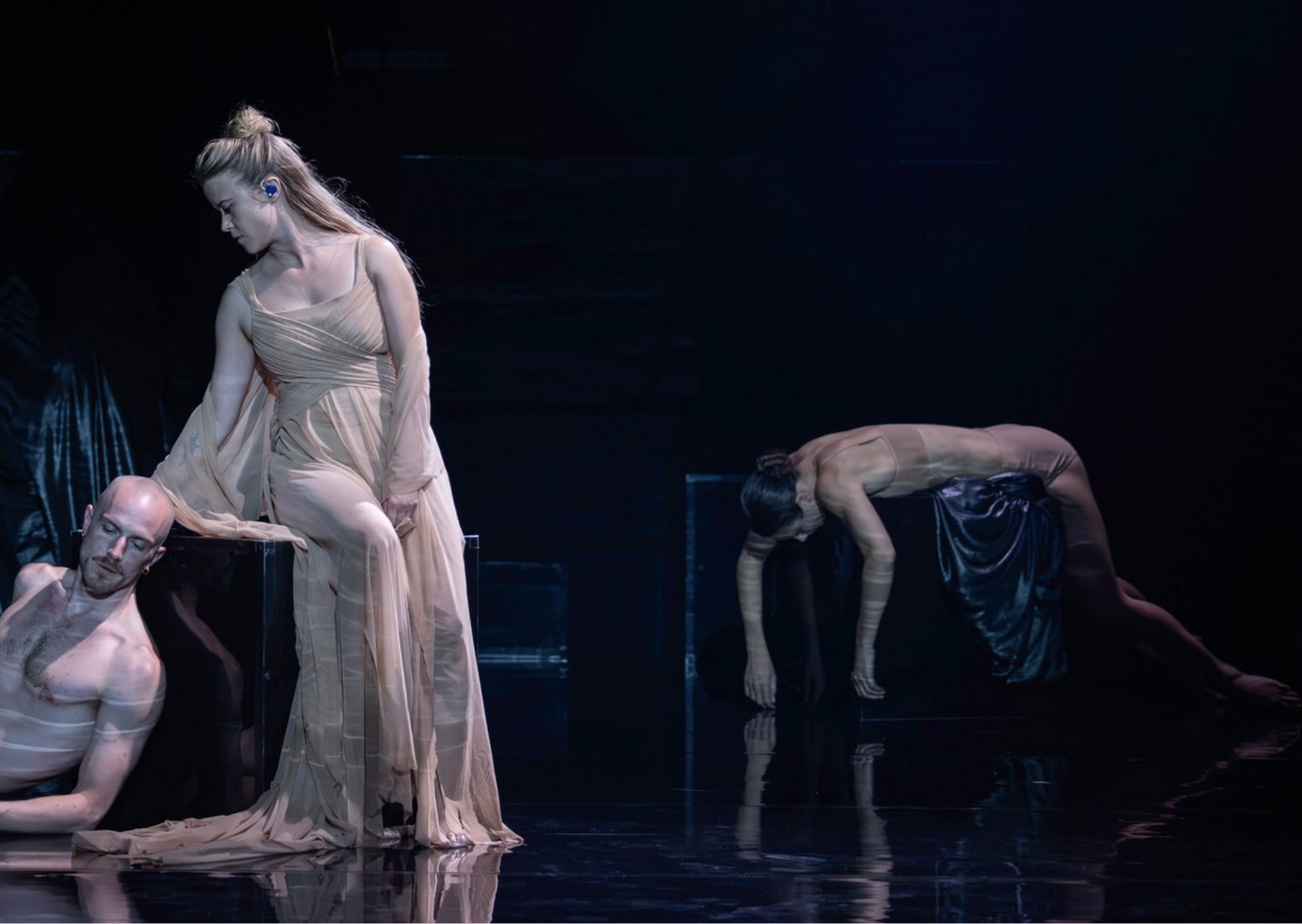 Varje beröring mellan sångare och dansare blir en öppning inför förändring, en glimt av ömhet i ett hav av mörker. En utsträckt hand som förändrar själen. Metallisk hårdhet omvandlas mot slutet av föreställningen till himmelskt silver. Det är som motsättningarna hade skapat något större; en djupare lekfullhet.