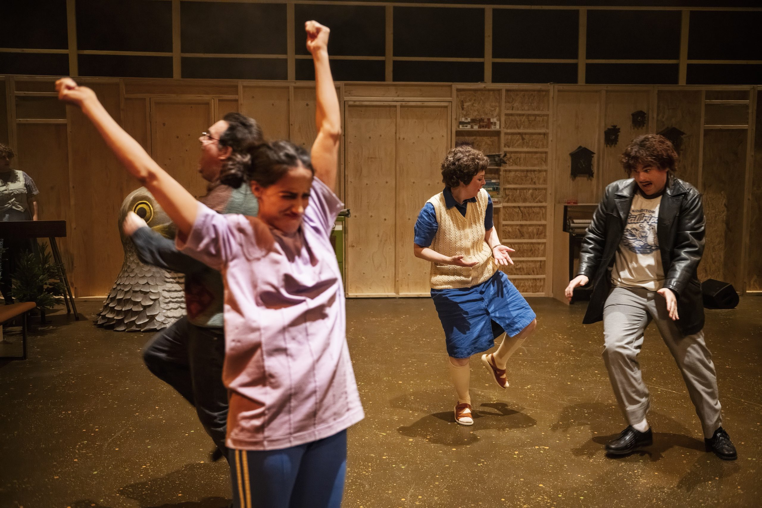 Mitt i allt kaos fastnar bilden av två separerade föräldrars hysteriska kringflackande med varsin flyttlåda på magen. I de koreografiska pauserna fungerar tonerna från live-musikernas kontrabas, piano och melodica som en fin, melankolisk och ibland urspårad inramning kring den unisona frustrationen. Vid ett tillfälle skakar hela ensemblen sina kroppar i någon slags kokko-dans tillsammans med ett enormt ägg. Då skuttas det även i publikraderna – en scen jag efteråt, inte helt oväntat, fick höra fastnat hos andraklassarna.