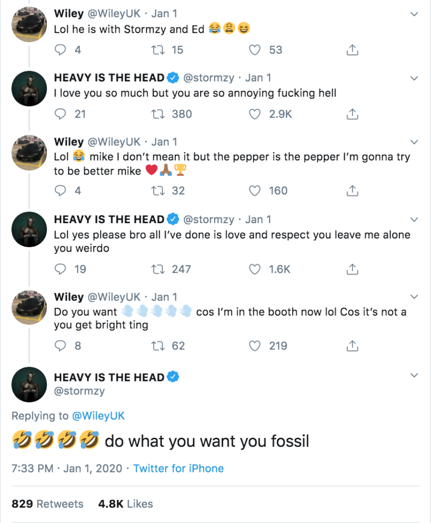 Kärleken mellan de två har pendlat fram och tillbaka rejält, från att Stormzy släppte hommaget ”Wiley Flow” och blev medbjuden ut på scen under en spelning av grimens gudfader, till att Wiley uttryckte sitt missnöje över att Stormzy säljer ut sig genom sitt samarbete med allas favorit-ginger Ed Sheeran när Take Me Back To London (feat. Stormzy) släpptes. OG-Wiley har länge kritiserat den sjungande Weasley-kopian för att vara en s.k. culture vulture.