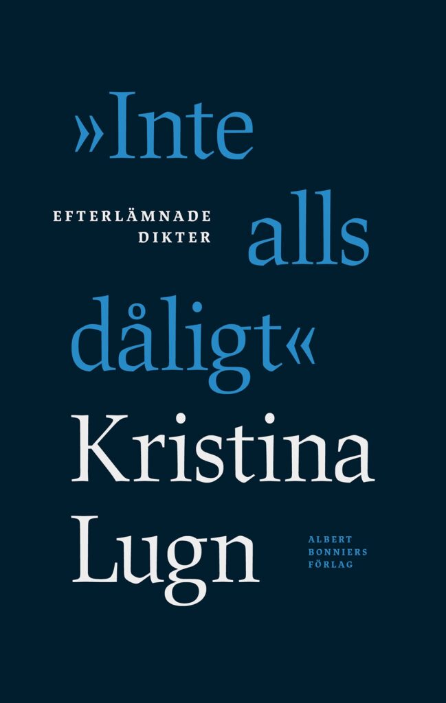 Våren 2020 dog Kristina Lugn och i år släpper hon nytt. Förläggare och redaktörer Eva Bonnier, Lina Rydén Reynols och Berit Åberg har gått igenom en pärm med dikter och diktutkast som författaren själv beskrivit som “inte alls dåligt”. De menar samma sak – materialet var bara osorterat. Efter urval och sammanställning publiceras “Inte alls dåligt” som en enhetlig diktsamling. Men dikterna låter fortfarande som utkast.