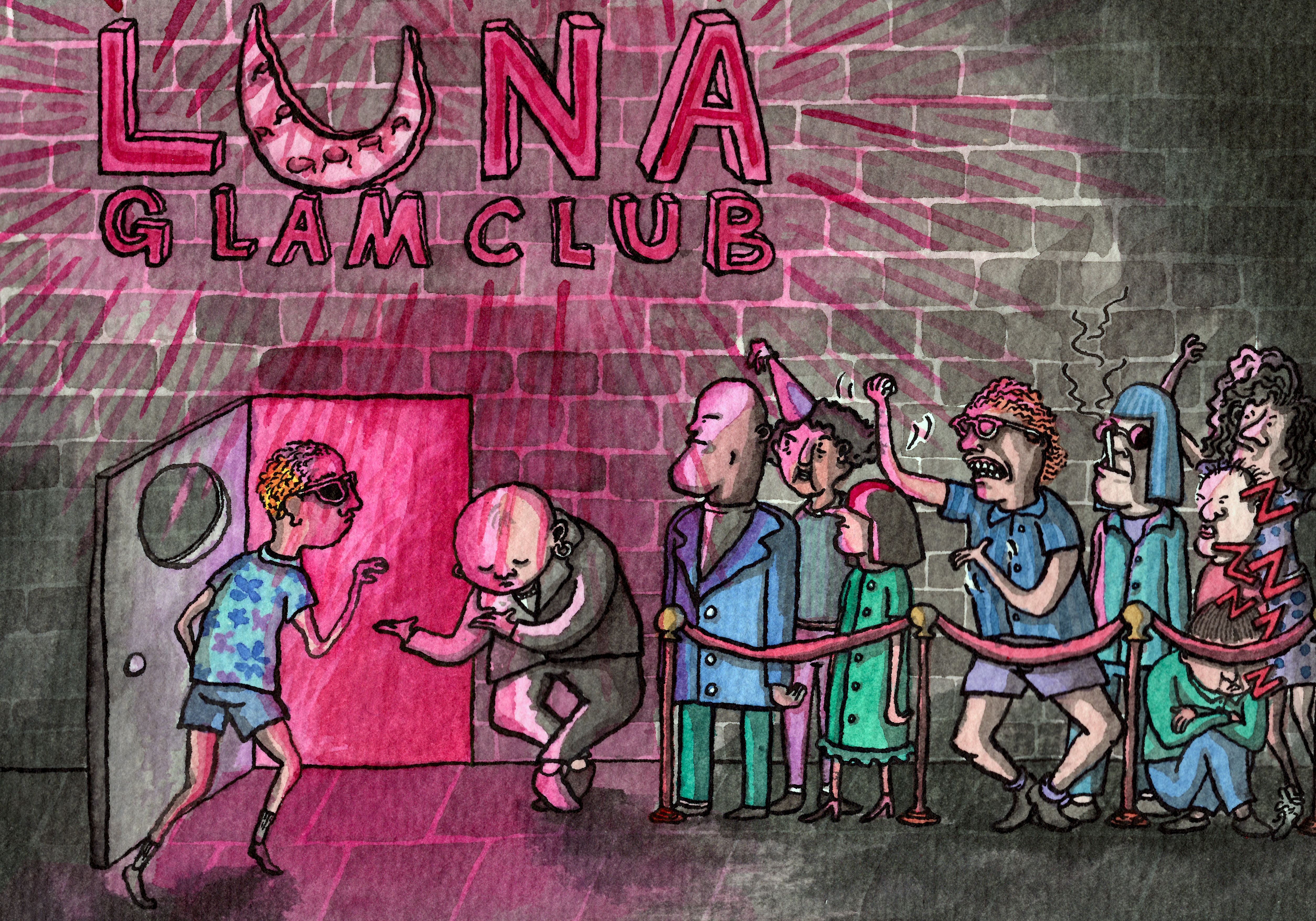 Men trägen vinner, för på väg ut från kuststaden låg en klubb uppe på en kulle som syntes flera kilometer bort tack vare strålkastarna som sköts rakt upp i sommarnatten. Som ljuskåta myggor lockades vi av lampornas svepande rörelser — vi kunde bara inte åka förbi utan att åtminstone försöka komma in. Vi tog oss upp till Luna Glam Club (klart att den hette så), endast för att låta hoppet bli krossat igen. Kön var inte superlång, men det fanns inget system överhuvudtaget, bara en enorm grupp italienare med mord i blicken. In skulle de, och drinkar skulle förtäras. Efter en kollektiv suck av mig och mina vänner frågade vi dörrvakten, fejkat förvirrade, om gänget packade sardiner var kön till klubben, varpå svaret var ett självklart “Yes”. Efter ytterligare diskussioner gällande om vi skulle försöka trycka oss fram likt desperata amerikaner i Black Friday-kön på Walmart, eller om vi bara skulle kapitulera, så hände det. Det där som bara händer i filmer. Knappt då ens?