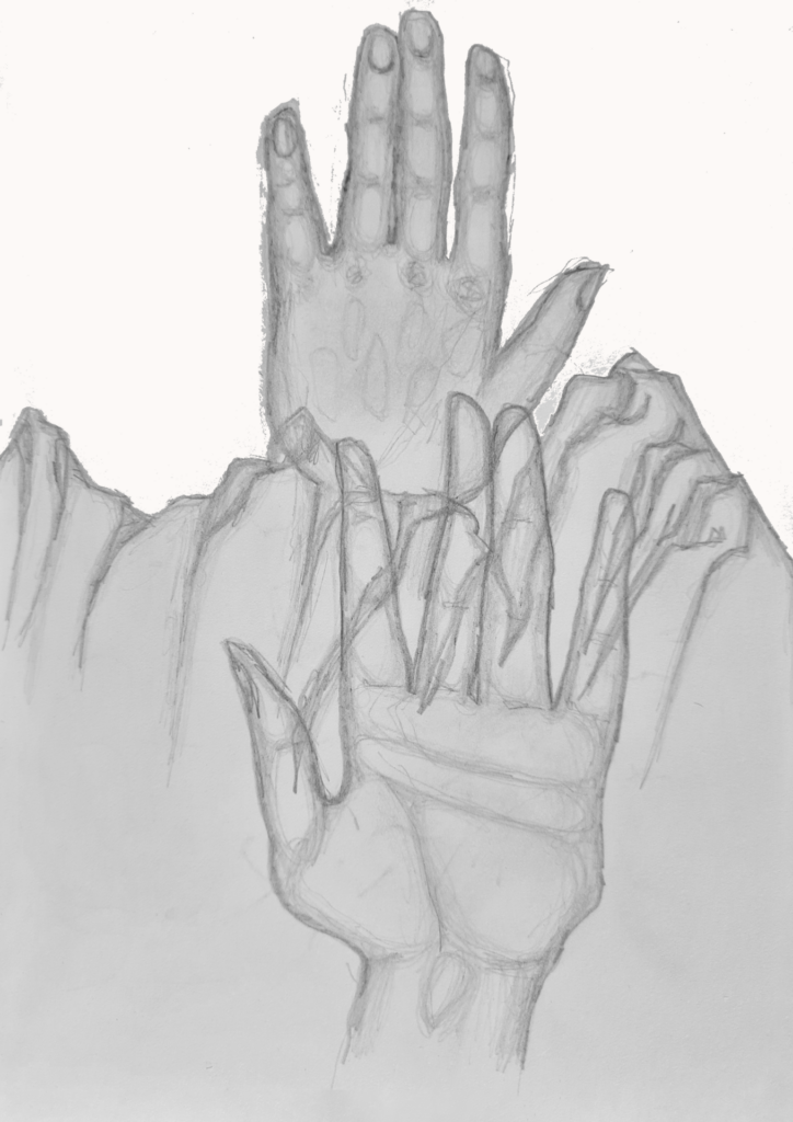 Mina händer fyllda av någon annans, vars fingrar är en del av mig