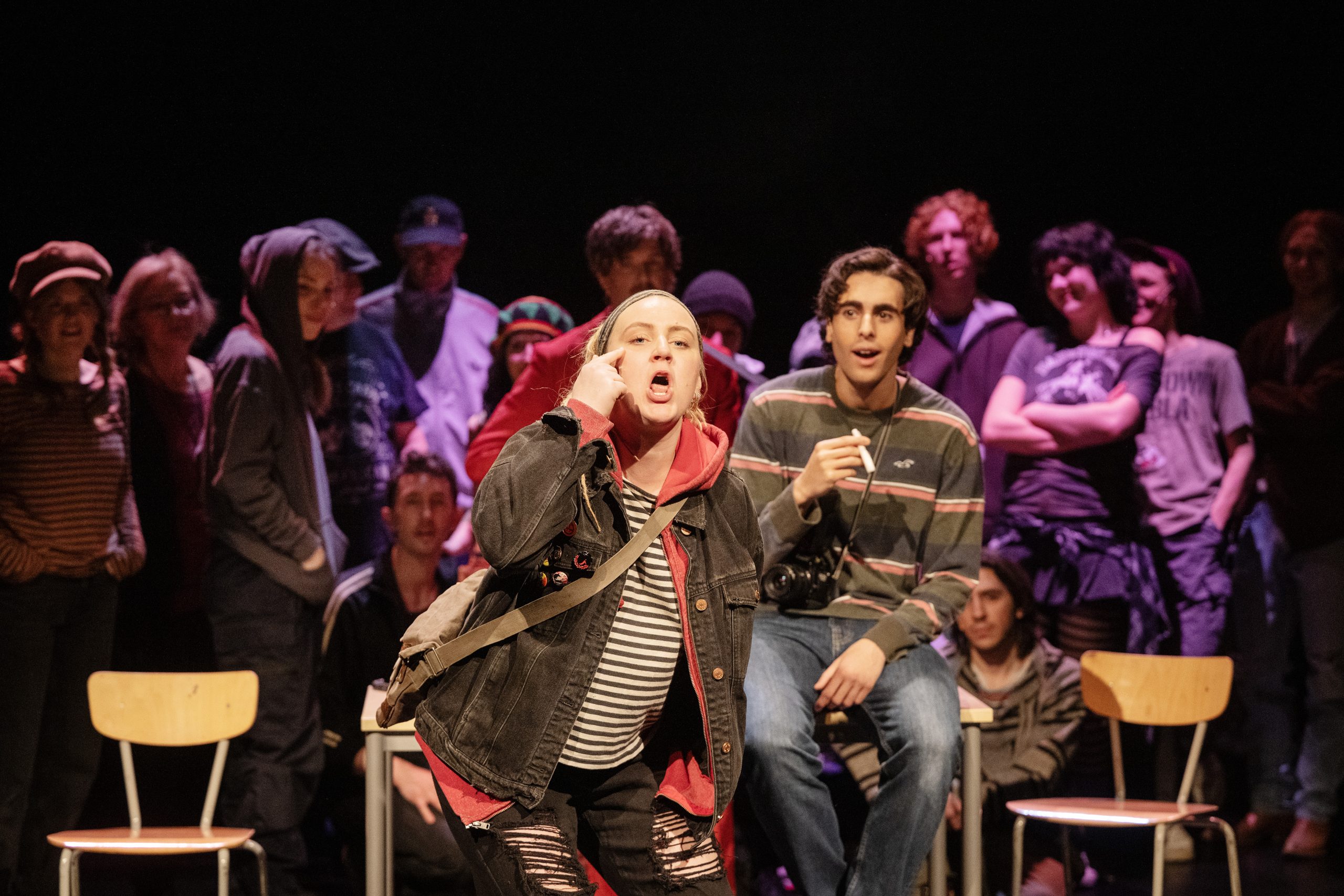 När föreställningen går mot sitt slut är det med ett försök att knyta ihop säcken med en framåtblick. Den nya generationens rörelser nämns, men det är snarare ett vagt axplock från samtiden än en blinkning till de som tagit över facklan från Göteborgsaktivisterna: “Fridays for Future, den Arabiska våren, engagemanget mot kriget i Ukraina, Gazaprotesterna”.