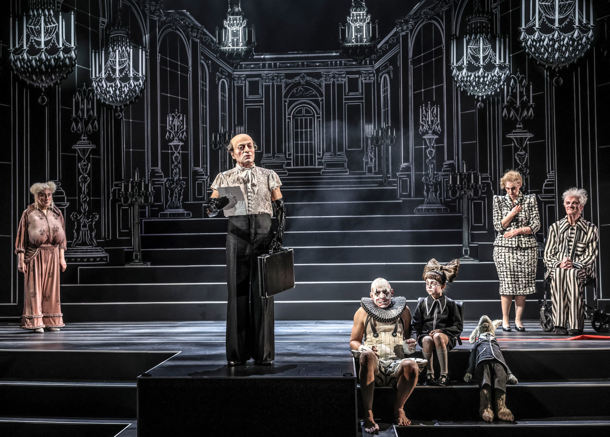 Ensemblen gör hysteriskt roliga karaktärsporträtt som fångar hur hovfolket vacklar mellan att hålla på PK-etiketten och att släppa fram sina flippade autentiska jag. Gestaltningen eskalerar i krymplingen Oronte (Omid Khansari), en gollumkaraktär som slits mellan två röster – en dresserad musröst som piper fram uppbyggliga terapimantran och en monstruös röst som vrålar om Orontes lantenta våldspotential. Det excentriska persongalleriet förhöjs av Matilda Hyttstens gotiska sagokostymer samt Moa Hedbergs och Anne-Charlotte Reinholds groteska flintperuker och eksemtäta mask.