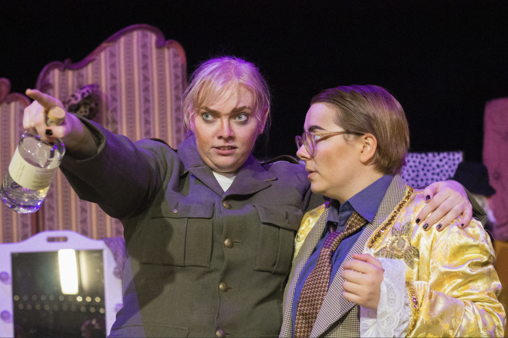 – Vi vill skildra queerrelationer. Många i vår grupp identifierar sig på något sätt som queer och vi vill ge plats åt deras berättelser. Ytterligare en dimension som påverkar våra uppsättningar är just att arbetet är ideellt, vilket gör att det är väldigt mycket kärlek i det vi gör. Av ekonomiska skäl tvingas vi ha längre arbetsprocesser än professionella teatrar, det är ingen genomstressad process. Vi försöker också utmana scenrummet och placera publiken på nya sätt, till exempel vid cafébord där de kan få ta med sig sitt kaffe in och njuta av det under föreställningen, vilket man sällan får på andra teatrar. Dessutom är vi alla ungefär mellan 20-30 år, så när man kommer på en föreställning hos oss stöttar man unga scenkonstnärer både på och bakom scenen.