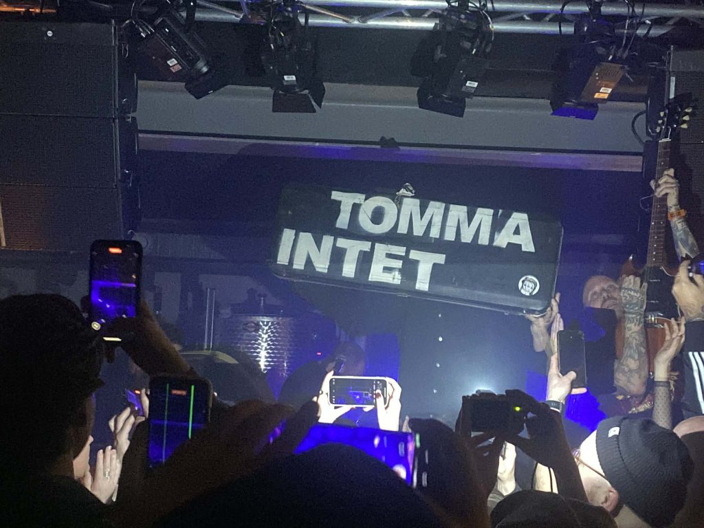 Boråsarna firar tio vintrar som band i år, och de gör det med bland annat nomineringar som årets rock på Manifestgalan och en topp 30 plats på KULTs bästa album från 2025 i ryggen. Med min 85 kronor dyra öl i handen går jag runt i lokalen och undersöker Tomma Intets supporterskara. Det är inte helt lätt, det är ganska proppfullt på det här väldigt smala scengolvet, men efter att ha strukit längs med den vinfatsklädda väggen förstår jag snart att de yngre finns längre fram och de äldre håller sig bakom i vanlig ordning. En förväntat eklektisk folksamling.