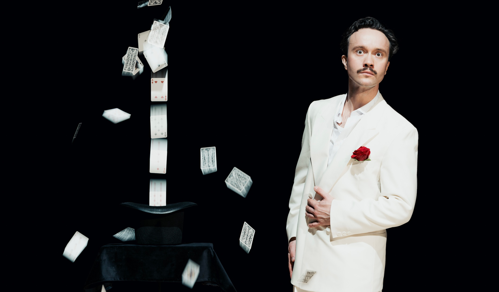 Den handsvettiga lilla pojken som, stärkt av sin fascination för magin, underhöll äldre barn på barnkalas och blev kompis med deras pappor gestaltas med flame-beanie på Isidors huvud. Han rör sig sömlöst mellan rollerna i sitt förflutna jag och tecknar ett respektfullt porträtt av en ensam pojke som med hatkärlek till konstformen tar sig hela vägen från Tynnereds kulturdag 2008, till SM i trolleri, till nutid. Orimligt många ägg värps ur magikerns mun, flanellkalsonger med klöver- och spader- tryck flaxar förbi, bord blir tyngdlösa, mynt uppstår ur tomma intet och olika rep byter längd när rätt trollformel uttalas. Snitsiga trick blir kittet för kvällens historieberättande.