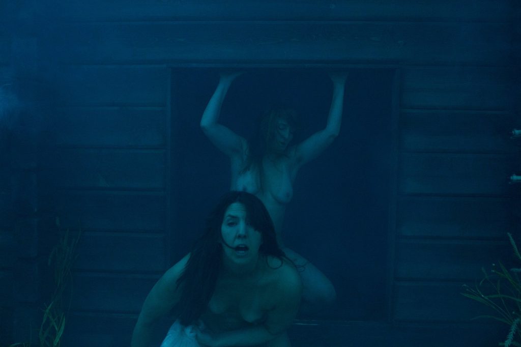 Falukorvslukten gör mig härligt nostalgisk men också en aning äcklad. Korven etablerar sig tidigt. Publiken möter köttet. Jag undrar (genuint) vad en kvinnas underliv luktar, inte rå falukorv väl? Stämningen bland publiken är oroande förväntansfull, Är det såhär det är att vänta på att gå in på Moulin Rouge, eller Club Privé? Fäboden skakar igen. Hur lång tid har gått? När ska något hända i den… BAM!