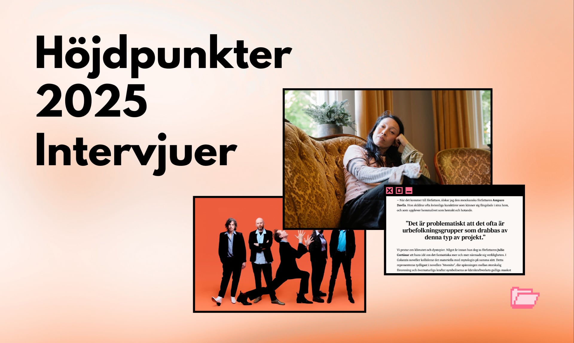 2025 är över men inte KULT Magasin! Nedan listar vi våra bästa intervjuer från det gångna året – från fria teatergrupper till indierockband, utländska författare till bildkonstnärer.