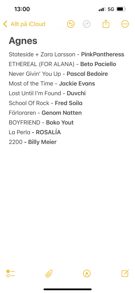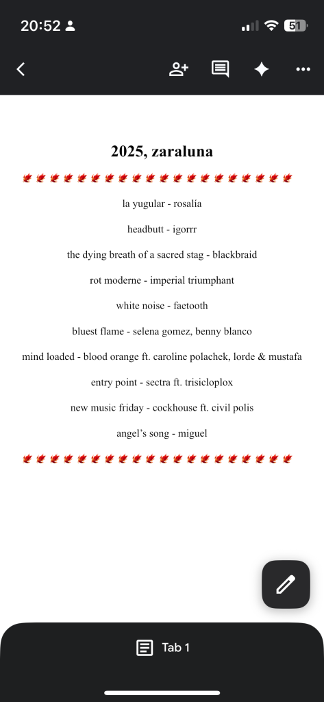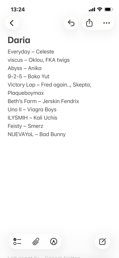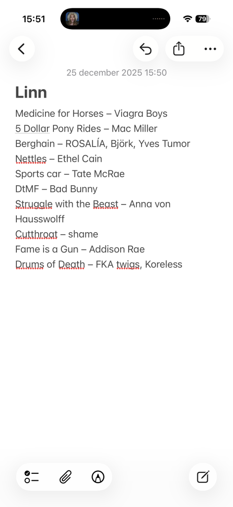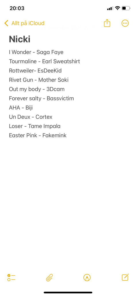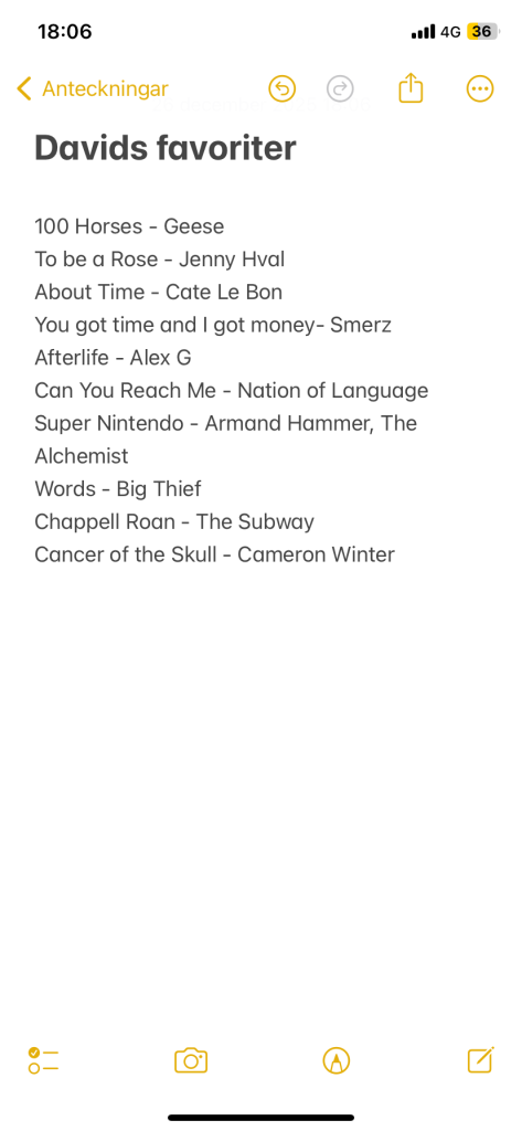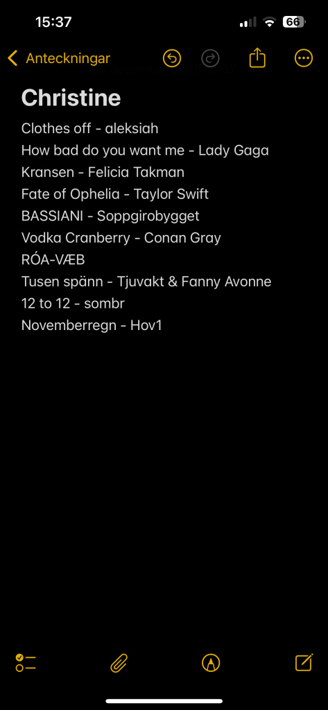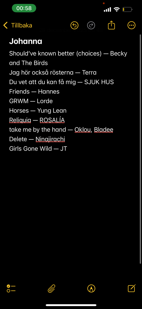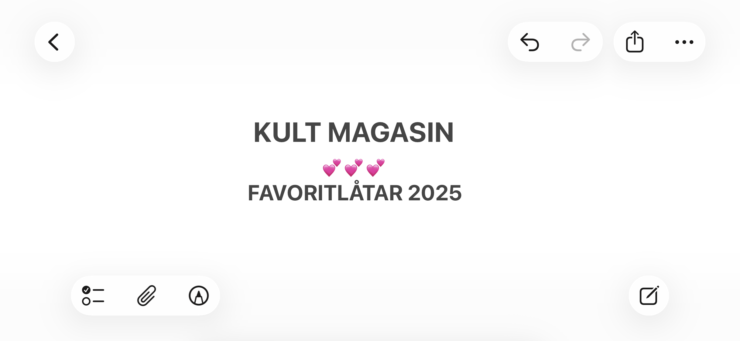 Det bästa, och värsta, med den här tiden på året är att alla stackars listbesatta människor äntligen har sitt tillfälle att skina. Utan någon som helst skam i kroppen kan man dra fram årslistor, små framtidsspaningar i punktform, prydliga dagbokssidor med nyårsmål eller slarviga mobilanteckningar om hur året har gått, utan att folk omkring en börjar googla diagnoser. Det här, det är tiden för er. För oss. Låt oss vara ärliga här. Som vi väntat, bidat vår tid, och nu, äntligen, är det dags för en av de allra viktigaste listorna. Vi ger er: våra favoritlåtar från 2025.