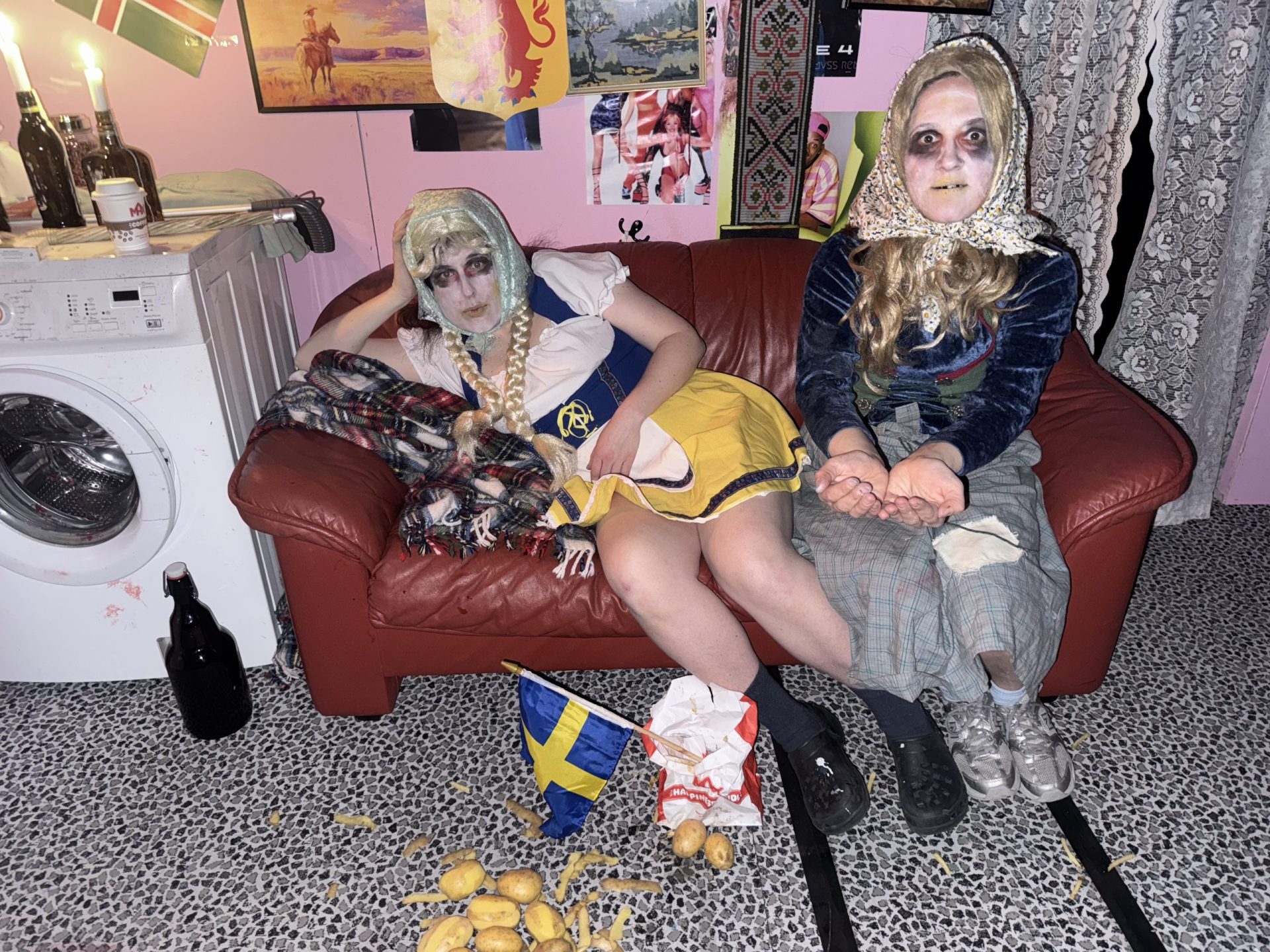 Första gången jag besökte Turteatern var för den fyra och en halv timmes långa föreställningen Det Sista Eposet 2019 i regi av Marie Nikazm Bakken. Det var en förtrollande, nästan hypnotisk upplevelse som jag gick och såg tre gånger. Men det sista eposet blev det som tur var inte och nu har Nikazm Bakken (premiären till ära klädd i folkdräkt i Turteaterns färger – svart och rosa) gjort det igen! Nu med ett epos baserat på svensk kulturkanon, en föreställning på FEM TIMMAR (inklusive två pauser på tjugo minuter). Jag kommer behöva gå igen. Min bror behöver se detta!