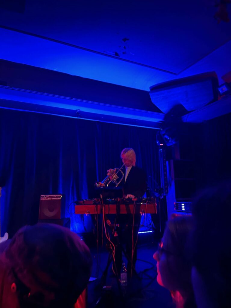 Bandet kliver in utan ett ord, Boman ställer sig på scen och ekande trummor får hela lokalen att tystna. Instrumenten spelar högt så att det vibrerar under fötterna, och konserten inleds med låten I Wish We Had More Time. Bandet är otroligt skickligt, gitarristen Julia Ringdahl spelar på elgitarr-strängarna med stråke, medan synth och kornett spelas samtidigt av Ellen Pettersson. Till det blåa undervattenljuset och de flytande tonerna känns upplevelsen berusande. Det är inte förrän konsertens andra låt Maybe som Boman introducerar sig själv. “It feels like I’m shorter than at the sound check. My voice is not on top so I bought this 40 euro honey”, säger hon och placerar en stor sked honung i munnen.