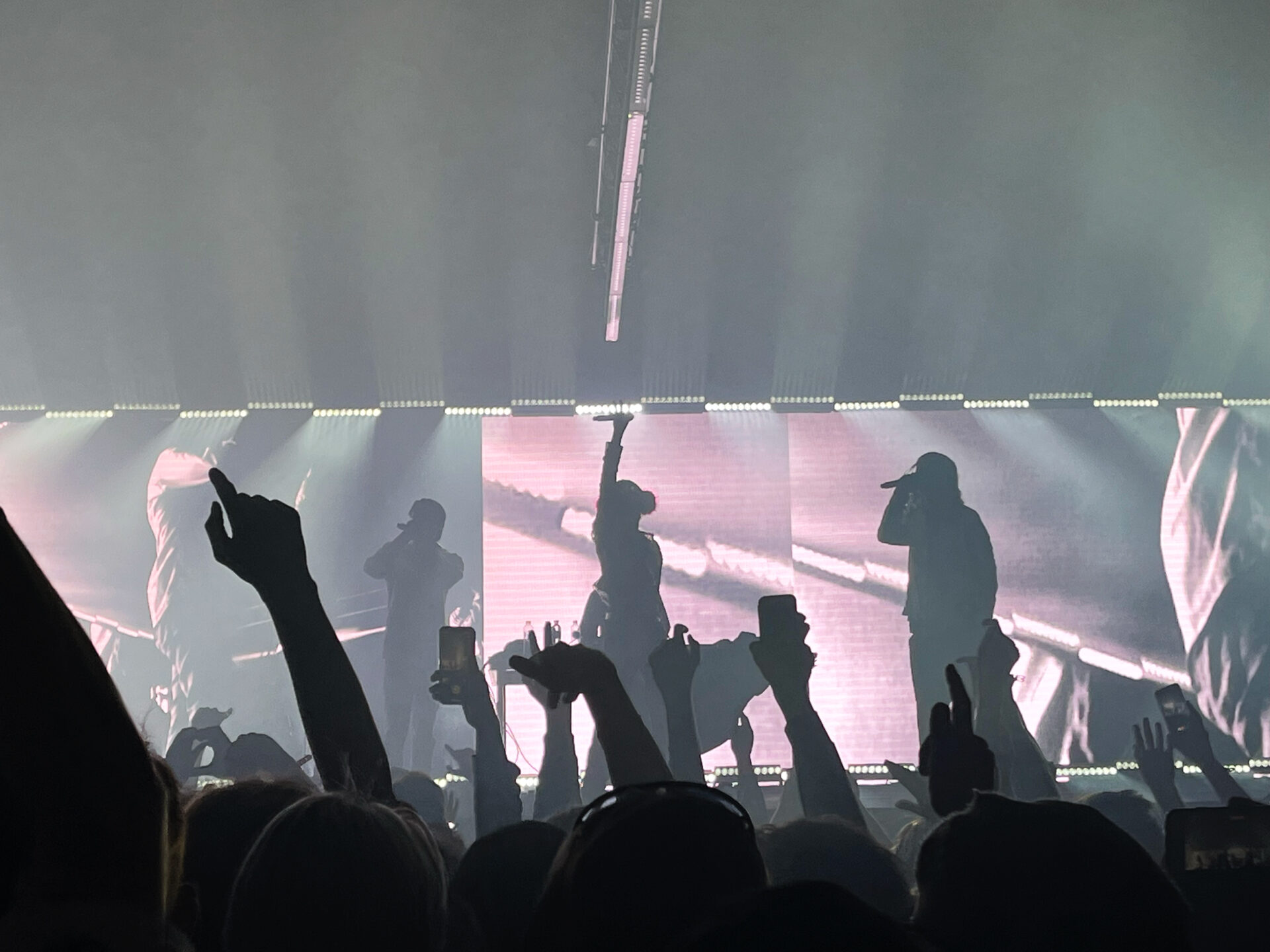 Efter årets Drain Gang 2022 World Tour är det passande att se att dessa tre kreatörer mognat till ordentligt och blivit en monsterakt live. Från startskottet Western Union, den mest streamade låten de gjort tillsammans, påbörjas ett set sönderpackat av bangers på bangers på bangers med knappa pauser mellan låtarna. Traptrummor dånar, hi-hats skramlar och syntarna synkar perfekt med sången, som för det mesta levereras live av medlemmarna. Ljusshowen utvecklas konstant under setets gång, byter färg med strobelights och en ljusslinga som sträcker sig över hela lokalen. Dran Gang dränks i ljusstrålarna, men silhuetterna syns ändå, och de kan kommunicera fullt ut med publiken. Faktumet att Förbindelsehallens utgångar är öppna portar hindrar också publikhavet från att bli för lökigt – en liten detalj, men ett stort plus.