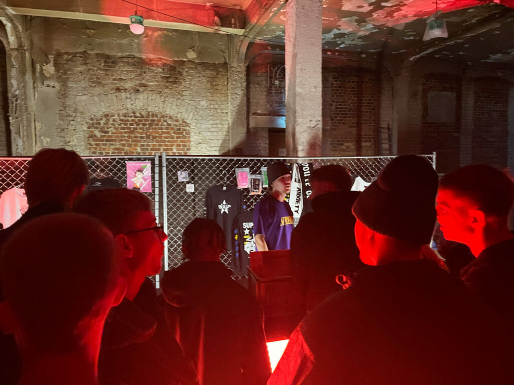 Sad Boys- och Drain Gang-relaterade events brukar vara stora happenings i scenen: den punkiga estetiken och outsider-auran hos dyrkande fans gör att dessa spelningar är en av få fysiska platser där man som fan känner sig som en del av communityt. Fans egna tolkningar av drainig:a outfits fångar blickar på Slakthusområdet denna kväll – med det sagt ser väldigt många besökare också “bara” ut som din vanliga Lollapalooza-besökare. Lojaliteten uppenbarar sig i den långa slingrande kön, där vi väntar på chansen att nå fram till ett merchbås man knappt kan skymta. Merchet är givetvis sällsynt, very rare. Jag anslöt mig egentligen bara för jag ville se båset, men blev precis längst fram lite sugen på en Jonatan Leandoer127-vinyl. “It’s probably your only chance to get it wrapped in plastic” sa den engelsktalige individen bredvid mig när jag behövde råd i mitt övervägande. Han kanske vallfärdat hit.