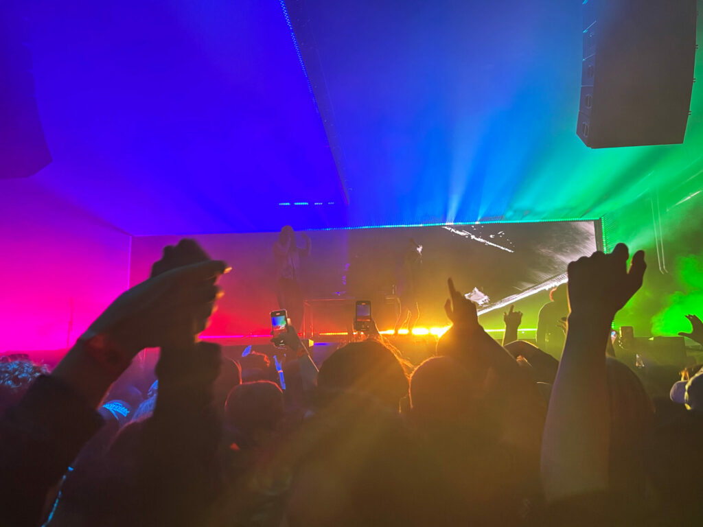 Trion står symmetriskt på scen, där den som som sjunger hooken eller versen oftast intar positionen i mitten, vilket på ett snyggt men lite självmedvetet sätt försöker synkas under setets gång – självmedvetenhet och osäkerhet är en så naturlig del av drain-verktygslådan att detta bara bidrar till vibben. Resultatet är att de tre artisterna kompletterar varandra makalöst. Detta gör att entusiasmen från publiken blir konsistent starkt, med olika delar av publiken som blir hype för varje låt – kanske har alla sin egna favoritmedlem i Drain Gang, eller till och med favoritprojekt från artisterna. Eftersom detta set har en massiv repertoar att plocka från, med uppemot 10 års material från alla tre medlemmarna plus deras kollaborativa projekt, blir det bara bangers. Nästan varje låt får publiken att bli helt galen, både nyare populära låtar som The Flag is Raised och Reality Surf och klassiker som IDGAF och Victim.
