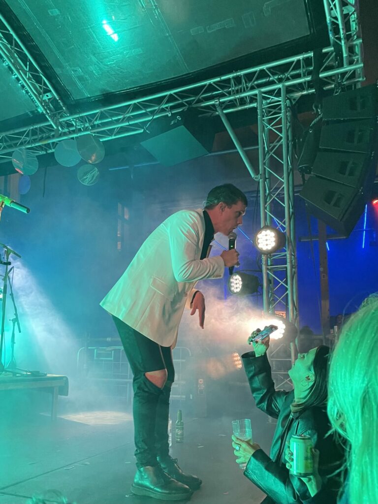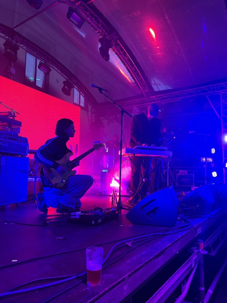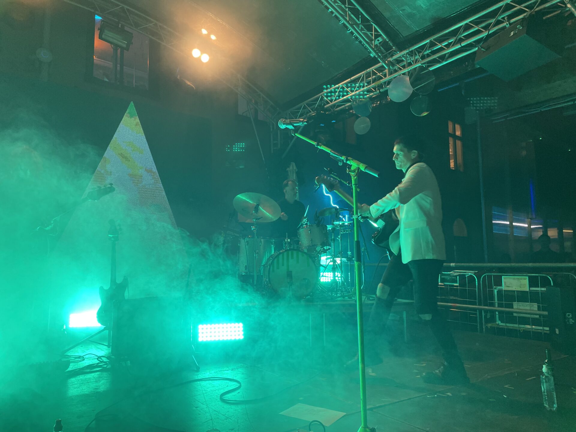 På scen råder ett kontrollerat kaos. Ljuset flackar och Jonathan Johansson stapplar runt som om han vore possessed. Lite likt Jakob Hellmans karakteristiska sätt att ducka micken. Titt som tätt snubblar Jonathan Johansson till, lägligt nog rakt över sina pedaler och gitarrljudet byts ut i en perfekt övergång. Det är en planerad spontanitet över det hela. Flera gånger vänder han publiken ryggen och står istället mot bandet – tre snubbar till synes försjunkna i sitt egna. Annars rör han sig mest hela tiden.