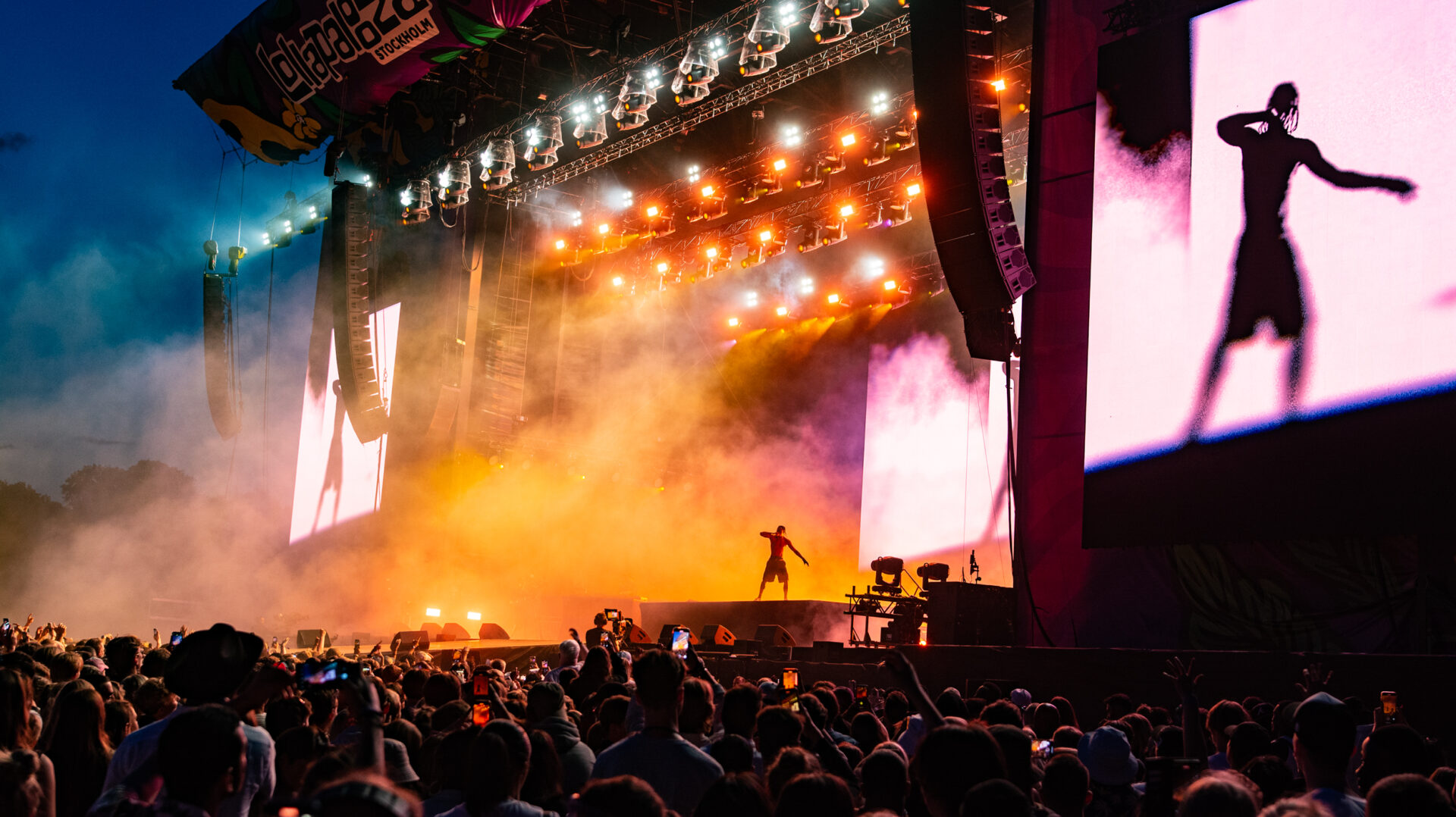Svaret får vänta drygt 15 minuter, då La Flame (ett av Travis flera smeknamn) kliver på sent och berättar något som är svårt att tyda. Jag tror att han påpekar att han är hög. Sedan drar det igång, och snart hörs HIGHEST IN THE ROOM. Som förväntat går publiken igång, och när rökshowen börjar och kameratrolleriet visar kvällens största akt på skärmarna, är stämningen maxad. DJ:n öser på med samples av pistolskott och örnskrik, och ibland överröstar de den musikaliska backdropen lite för mycket. Ljudet från Kygos spelning på scenen bredvid har låtit krispigt och kraftigt, men det kan man inte säga om Travis. Han själv hörs bra, men som vilken rappare som helst skriker han över de mastrade versionerna av sina låtar på konserter. Flera rappares liveframträdanden fallerar på just det, men Travis är för bra för att misslyckas. Han är galet full av energi, och bjuder på något utöver det vanliga. Ändå sviker volymen lite; när SICKO MODE spelas under konsertens avslutande del hade basen gärna fått kännas ända i benmärgen, men volymen är så låg att den ikoniska beatswitchen till Drakes vers knappt hörs.