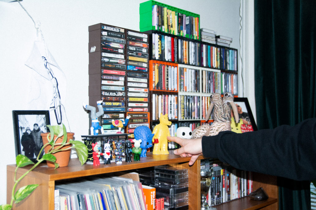Det är en solig eftermiddag när jag möter Pontus vid tunnelbanestationen i Örnsberg, som myllrar av människor och liv. Vi stiger in hans lägenhet tillika studio, och jag slås direkt av hur hans intresse genomsyrar hela utrymmet — väggarna är fyllda med konstverk som alla på ett eller annat sätt är kopplade till musiken. Looptroop Rockers andra album The Struggle Continues hänger på väggen i hallen, tillsammans med en Roffe Ruff-print och en bild på rapparen Jas the Cat photoshoppad in i en katt. Väggarna i vardagsrummet är fyllda av hyllor som innehåller CD-skivor, vinyler, merch från olika spelningar och gåvor från artister. När vi slår oss ner i köket pekar Pontus på stolen han just satt sig på och konstaterar att det nu är ombytta roller — intervjuaren ska själv bli intervjuad, och på stolen där han precis slagit sig ner har ett 50-tal olika hiphopartister suttit genom åren.