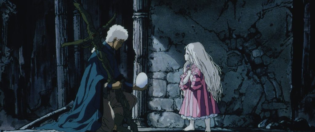 Det är just detta tillstånd av ambivalens Angel’s Egg vill återge, om än diffust och väl konstnärligt. Flickan håller sitt ägg som det sista hoppet i en värld av ruiner. Ägget blir hennes syfte, något som ger henne mening när allt annat fallit samman. Pojken däremot är mer reserverad, nästan skeptisk. Han har sett världen, kanske blivit bränd av den, och förstår att tron kan vara lika bräcklig som skalet hon skyddar. “Du måste krossa ett ägg för att veta vad som finns i det”, säger han. Kanske är det så också med tron: att den måste ställas mot väggen, pressas med ett antal “varför?” tills bara det nakna “därför” återstår som svar.