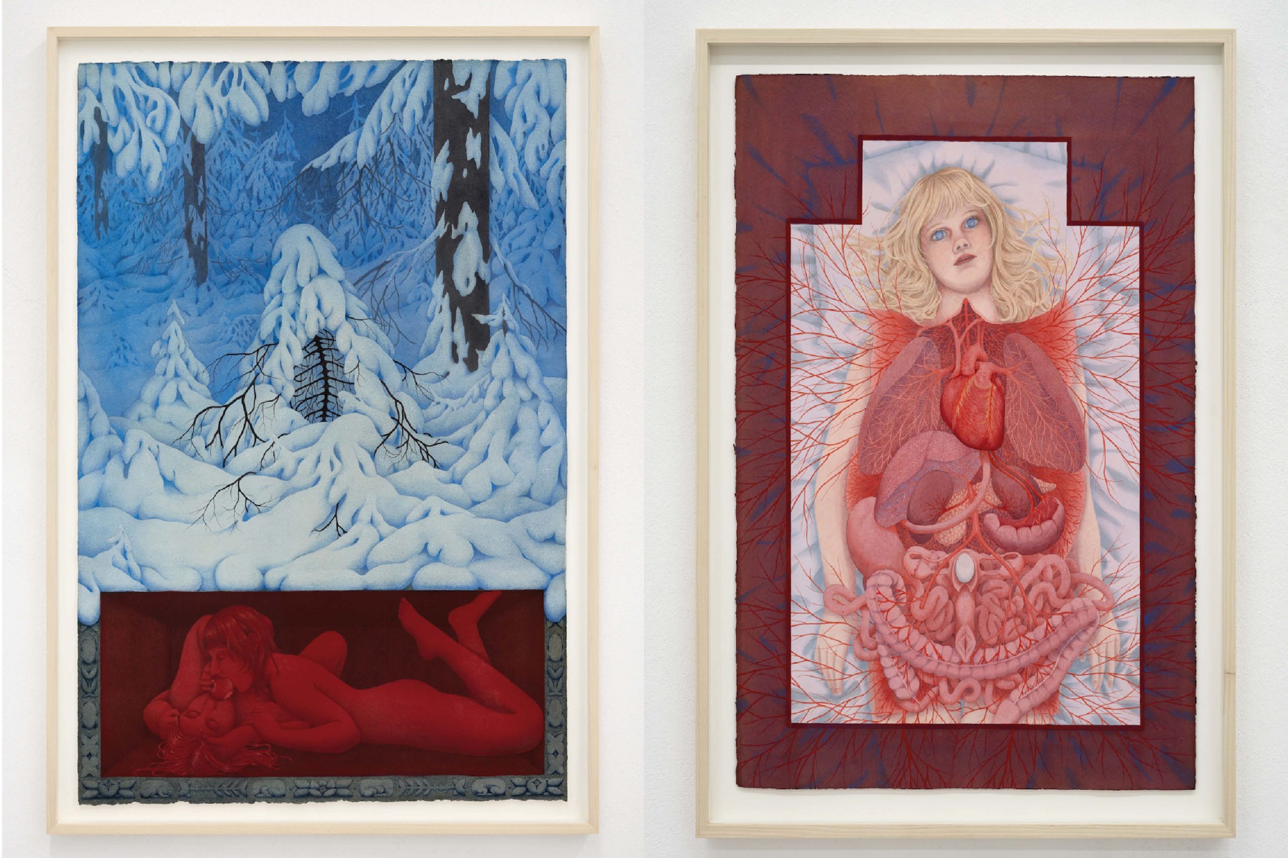 Den unga kvinnan på väg att upptäcka sin sexualitet känns igen i många av målningarna – kroppen är ibland erotisk, ibland uppfläkt och blodig, som i Venus, där blodådror växer som ett grenverk från de inre organen. Det är som om ådrorna vill ta sig bortom kroppens och tavelramens begränsningar och slå ut i ett blommande snår. Bilderna inger en känsla av att kroppens gränser suddas ut och tillsammans med naturen blir något större. Återigen visar Sønderland hur naturen verkar bortom bakgrundens roll – här som en förlängning av kroppen, där kvinnlighet och sexualitet tar form, bryts upp och växer samman igen.