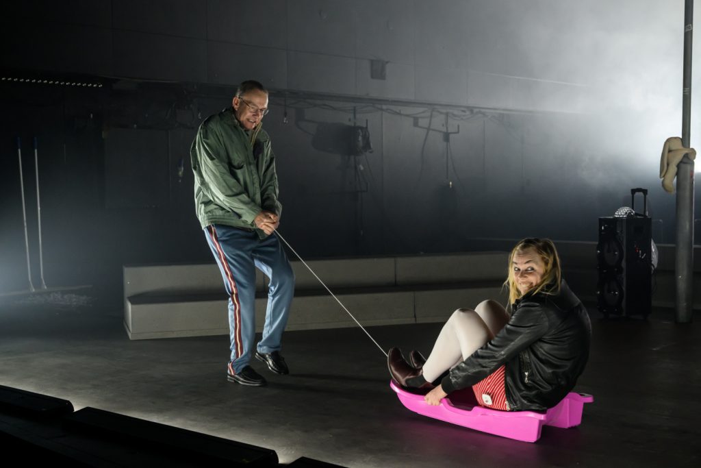 Föreställningens estetik är som tagen från streaming-jättarnas moodboards: färgstark kostym, symboltunga scenbilder – som en störtskur av kanyler över scenen – stroboskop, rökridåer, neonljus och ett 80s soundtrack. It’s giving Stranger Things! Det är visserligen en läcker look, och betydligt mer fantasieggande än det klassiska norénska scenrummet (ni vet, staplingsbara stolar i en black-box), men uttrycket skär sig med misären som texten skildrar. Råa repliker som när Den arbetslöse (Jens Hultén) erbjuder 100 spänn till den som lyckas röka en cigg med röven, blir i den här tappningen komiska, snarare än miserabla.