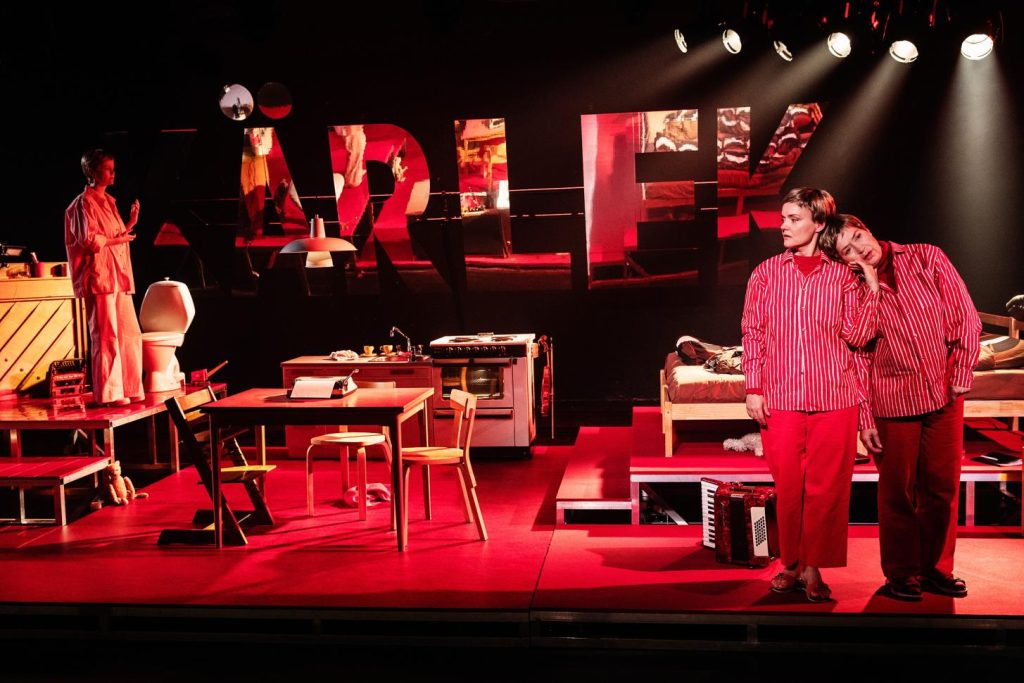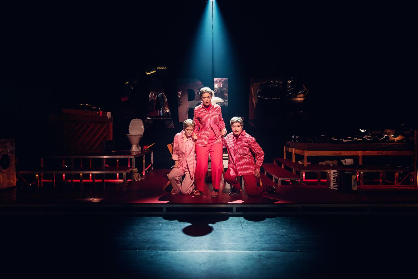Iscensättningen bygger vidare på musikteaterformen genom att låta tempot driva fram berättelsen i snabba, rytmiska skiftningar. När samma repliker om förlåtelse och löfte om förbättring återkommer skapar det en känsla av att den destruktiva relationen inte är ett enstaka kapitel utan en erfarenhet som följer Märta genom livet. Hoppen mellan de tre faserna gör att publiken ser hur mönstren byggs upp, upprepas och till slut fastnar som ett förutsägbart trauma.