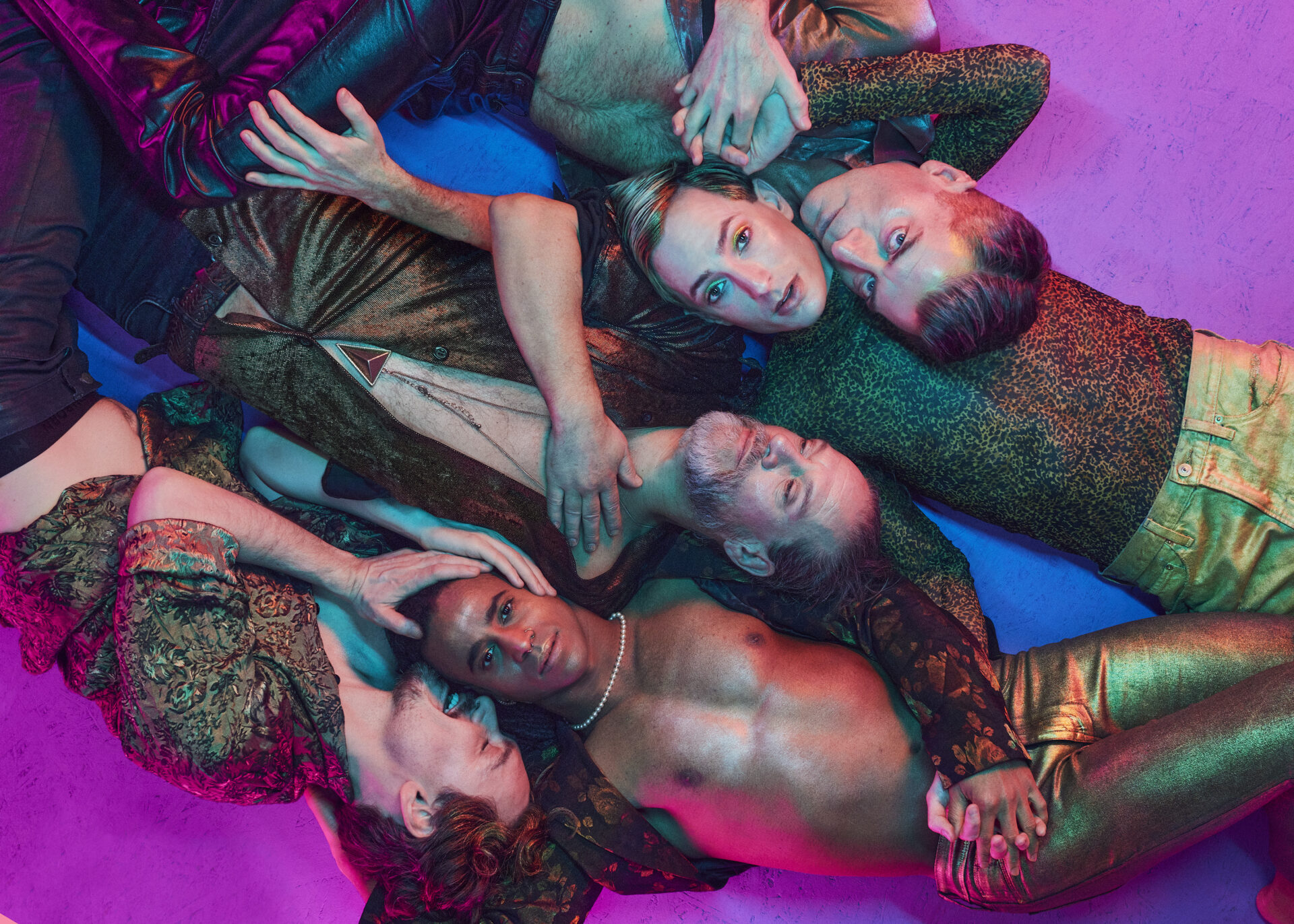 Jag tänker och förundras också över ensemblens samspelthet, bestående av både fysisk komik, tajming och starka skådespelarval. Jag skrattar åt Nils Wetterholms Zoomertwink i mullet. Den är rolig men öppnar också upp pjäsen för frågan om arvet från den äldre generationens bögar och huruvida de yngre på något sätt står i skuld till dem eller hur förvaltningen av arvet ska skötas. Håller bögkulturen på att inskränkas, mättas av och gentrifieras? Är detta något positivt, det innebär ju också en acceptans från majoritetssamhället? Eller håller vi på att förlora oss själva på bekostnad av acceptansen? Diskussionerna, som ofta även iscensätts som just direkta diskussioner och argumentationer mellan karaktärerna, är häftiga. De blir inte allmänna eller “näs-skriveri”, utan öppnar också upp diskussionen för publiken “utanför” böggemenskapen. Pjäsen blir tillgänglig och samtidigt specifik.
