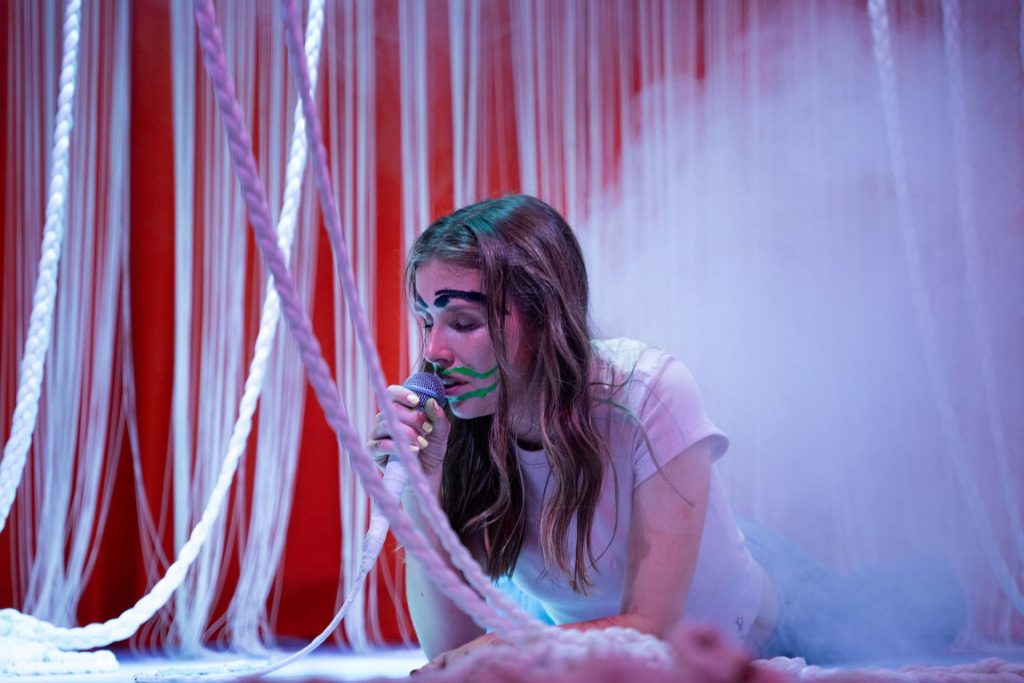 Pjäsen utspelar sig i det kaotiska ingenmanslandet mellan barndom och kvinnlighet.