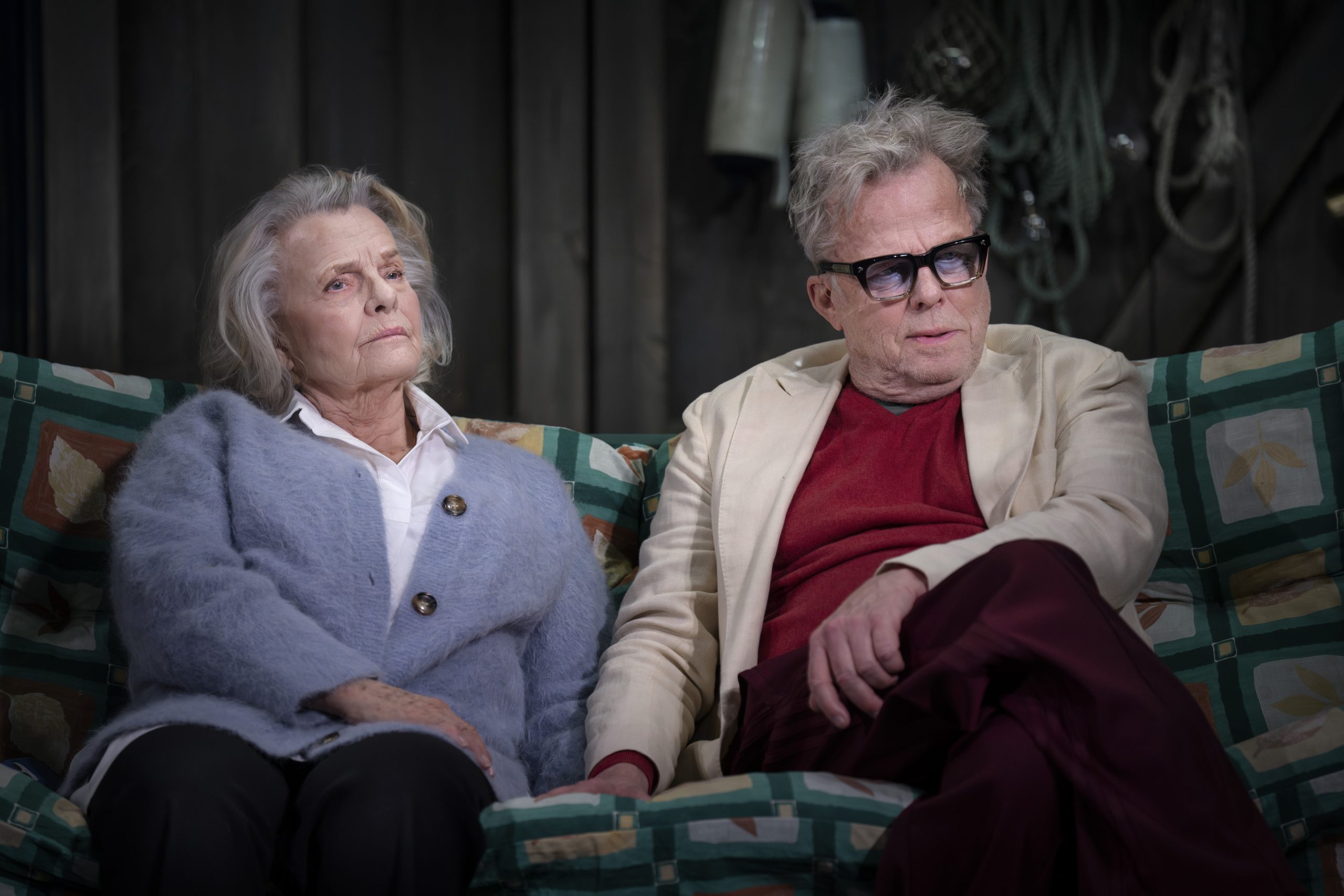 I Slutspelat möter vi Marie Göranzon och Krister Henriksson som, i rollerna som sig själva, sitter och hänger i ett båthus, aka green room till TV-programmet Renés Brygga. De är inbjudna för att göra promotion för pjäsen Slutspelat – text och regi Henrik Schyffert – som snart har premiär på Scalateatern. (Hörde jag någon säga ”meta”?) I väntan på sin intervju surrar Göranzon och Henriksson om Dramaten-skvaller, skådislivet och den kulturlösa samtiden.