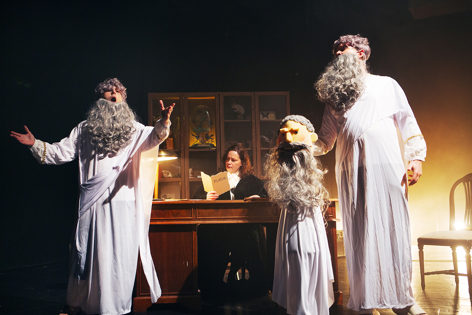 Med stark spelglädje kastar sig Amanda Krüger och Alexander Ohakas mellan de olika karaktärerna i pjäsens myllrande persongalleri, medan Sara Turpin står stadigt som den pompöse Olof Rudbeck. Ensemblens tvära kast mellan historiska figurer, från Platon till Drottning Kristina, kröns av Åsa Berglunds Cowburn och Erik Stenberg utsökta kostymer. Till och med dockversionen av Gabriel De La Gardie har fått en omsorgsfullt broderad 1600-tals mundering!