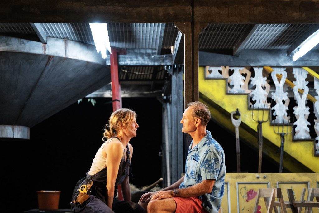 Tjechovs hästar har blivit fyrhjulingar och Volvobilar. Jevgenij Dorn heter här Jörgen, är gynekolog med stekarstil och spelas övertygande av Robin Stegmar. I Frida Fredrikssons smarta kostymdesign är han iklädd laxrosa chinos och med sin hawaiiskjorta medför han den välbehövda semesterkänslan till gården. Lantbrukaren Paula blir i Stephanie Hayes tolkning en sårbar, identitetssökande och rörande karaktär.